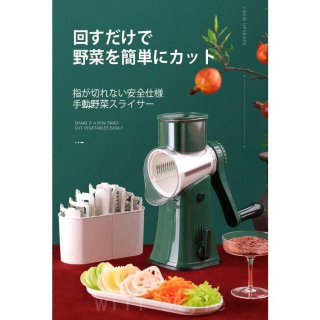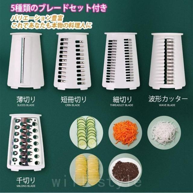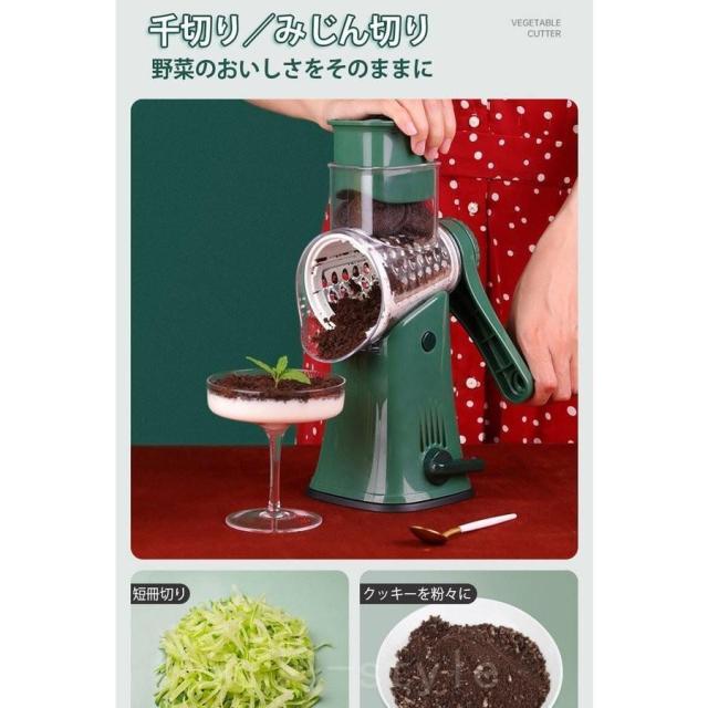 スライサー 野菜スライサー 手回し式 手動チーズスライサー 回転式 5種類ブレード 多機能 千切り器 野菜カッター ナッツ ミル お手入れ簡単 家庭用 洗いやすい
