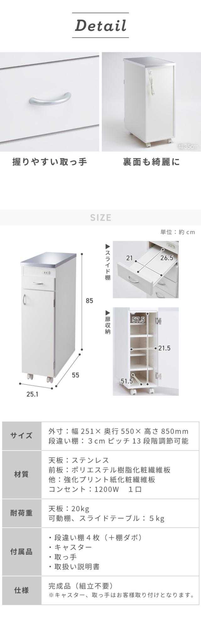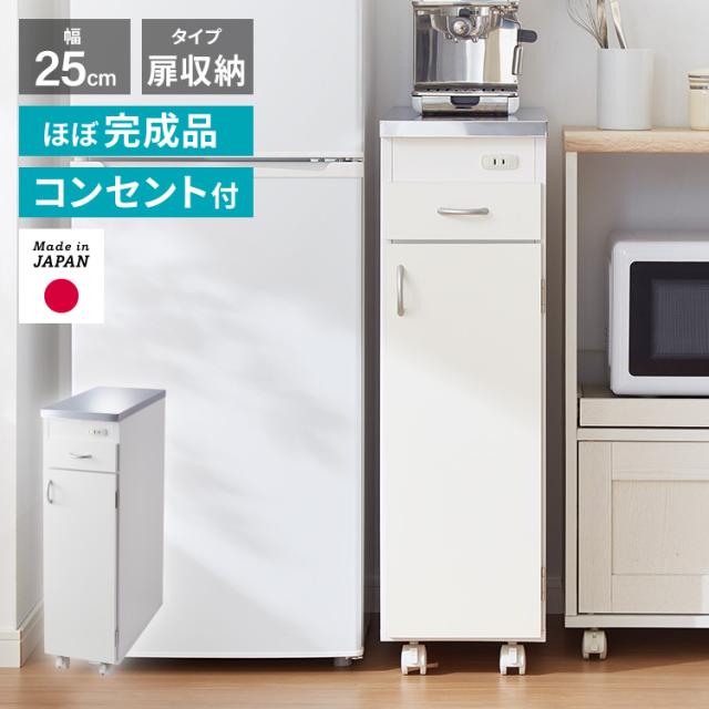 日本製 ステンレス天板 キッチン収納 幅25cm キャスター付き 扉付き シンク横ラック コンセント付き スリム収納 隙間活用 スリムラック キッチンストッカー 省スペース 省スペース 隙間収納【送料無料】