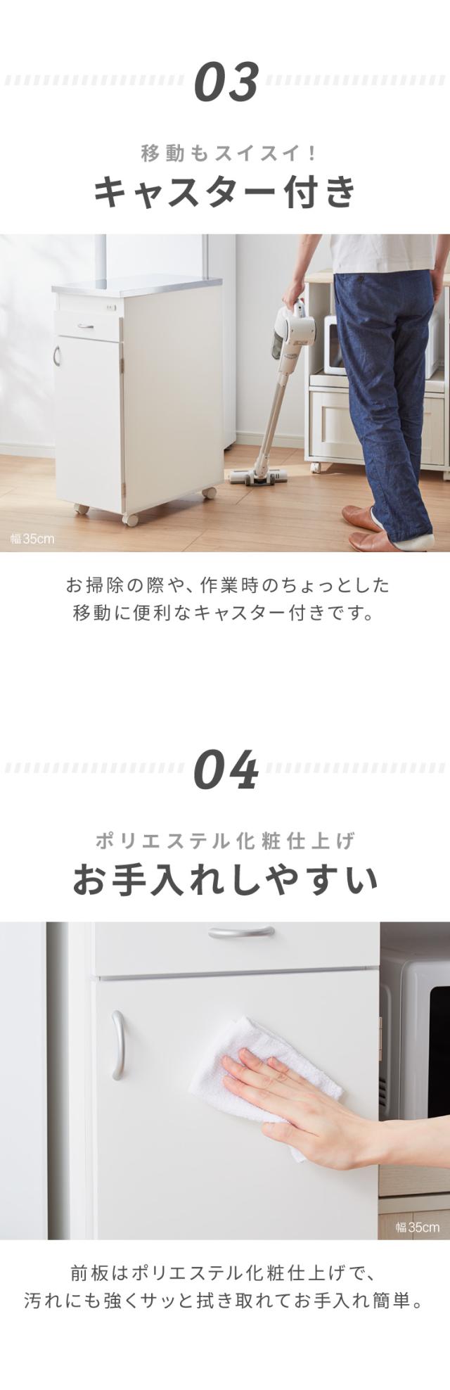 幅は20cm・25cm・30cm・35cmの4サイズ展開で、キッチンのスペースにぴったりフィット