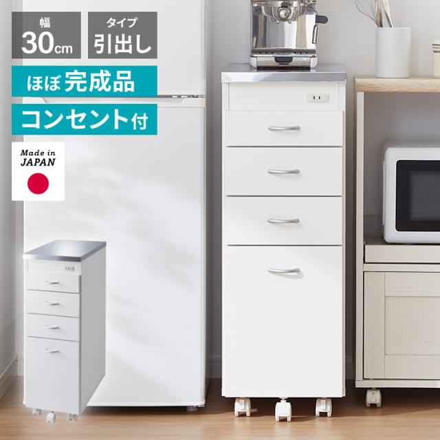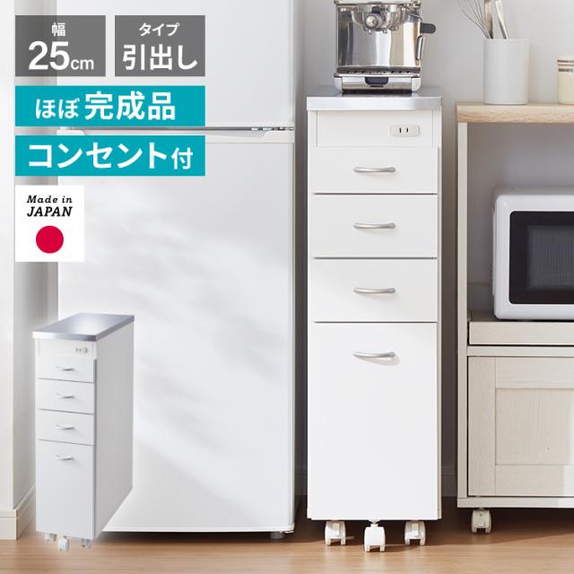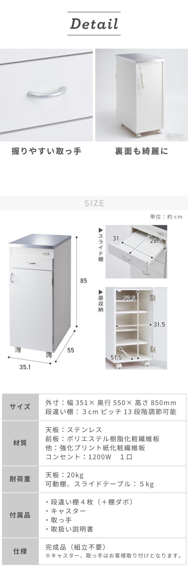 日本製 ステンレス天板 キッチン収納 幅35cm キャスター付き 扉タイプ コンセント付き シンクサイド収納 スリムラック モダンデザイン スリムラック キッチンストッカー 省スペース 隙間収納【送料無料】