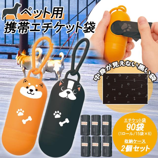 エチケット袋 犬用 6ロール 90袋 (1ロール/15袋) 送料無料 収納ケース2個付き 犬散歩 マナー袋 うんち袋 ゴミ袋 防臭袋 消臭袋 使い捨て ペット用 犬猫用 【ITFC】 RTD-rp0023