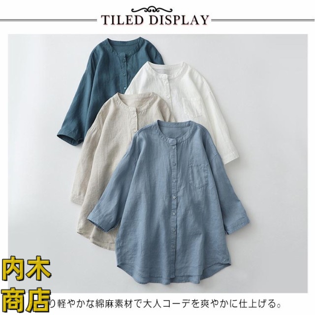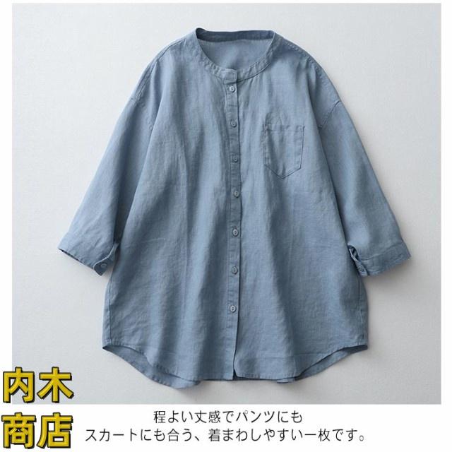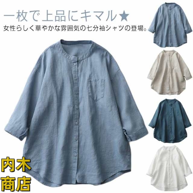 通勤 おしゃれ 送料無料 前開き シンプル 無地 ブラウス 上品 通気性 カジュアル 柔らかい 春 七分袖 トップス リネンシャツ 吸湿 シャツブラウス 可愛い スタンドカラーシャツ 涼しい 通学 ボタン 夏 綿麻 オフィス
