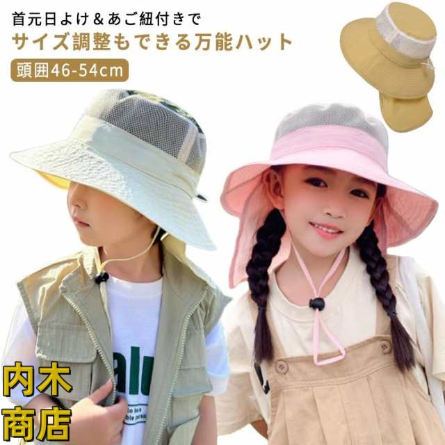| 切替メッシュデザインで通気性抜群! 首元日よけ&あご紐付きでサイズ調整もできる万能ハット 頭囲46-54cm 【ストラップ付】風での吹き飛ばし防止に! 顎紐も調整できるので飛んでいく心配がない!アウトドアでも安心して使えます! 【広めのツバ】日差しをしっかりガードしてくれて日焼け対策にもなるので、お出かけにびったり! 【首までしっかり日よけ対策】頭への直射日光を防ぐだけでなく、首筋まで日よけのタレでしっかりガード。子どもの首筋は皮膚が薄く、日焼けをするとジリジリ痛くなる部分。日よけで首の後ろを覆うことで、うっかり焼けを防止しながら熱中症対策も叶います。 【畳める&乾きやすい】シワになりにくく、畳んで持ち歩けるのが便利! 汗をかいてもさらっと快適♪ サラっとした生地は乾きやすく、お洗濯もOK◎ 【メッシュ素材で通気性◎】横部分は切替メッシュ仕様!熱がこもりにくく、蒸れない帽子は元気なお子様の味方! 【サイズ調整OK】頭の後ろについたアジャスターで、サイズ調整が可能です。ワンサイズ大きめを選んで、サイズ調整していただくとより長く使えます。 【可愛いデザイン】シンプルで「男女兼用」デザイン、どんなお洋服でも合わせやすい!ユニセックスデザインで兄弟でお揃いもOK! | |