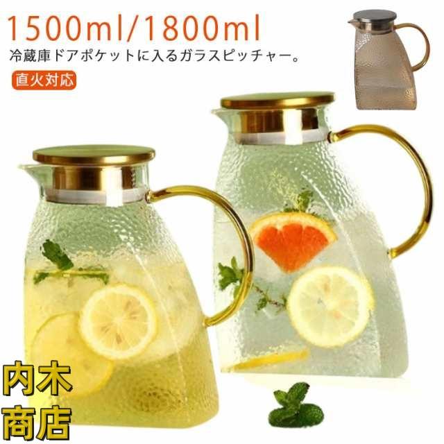 | 冷蔵庫ドアポケットに入るガラスピッチャー。【直火対応】【1500ml/1800ml】 【直火対応】耐熱のホウケイ酸ガラスで作られて、ビーカーと同じ材質で、直火可能なガラスポットです 【簡単に洗える】ボトルの口径が大きく、手が直接差し込めて清潔できます 【-20℃?150℃対応】麦茶、紅茶、ジュース、コーヒー、ミルクなどの飲み物を淹れたい時にご気楽にお使えいただけます。-20℃?150℃、耐熱ガラスので、温かい飲み物にも冷たい飲み物にも使える耐熱ガラス製のピッチャーです 【ステンレス茶こし一体型蓋】メッシュ茶こし:二種類のフィルター(茶こし)が付属していて、回転によって変えられます。小穴フィルターは茶葉や花茶、ティーバッグをご利用いただけます。大穴茶こし:太めフィルターは、大粒の果肉も通します。 【スリム】幅9センチ、冷蔵庫のドアポケットに入りやすく省スペースです。 | |