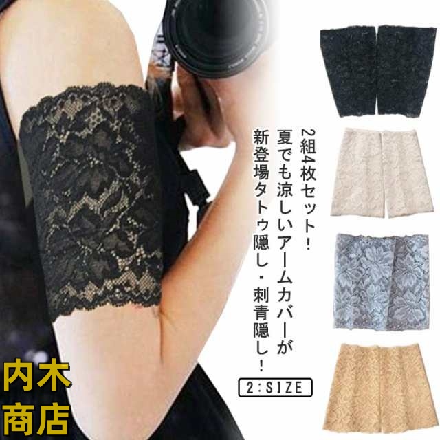 ストレッチ アームガード 通気性 送料無料 隠すサポーター 肌色 ラッシュガード 二の腕サポーター 日焼け対策 レース 黒 肌色サポーター グレー 接触冷感 2組4枚セット 刺青隠し タトゥー隠し ショート 二の腕カバー 傷跡かくし 傷跡隠す 白
