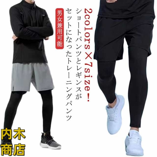 | 2colors×7size!ショートパンツとレギンスがセットになったトレーニングパンツ 男女兼用可能! | |