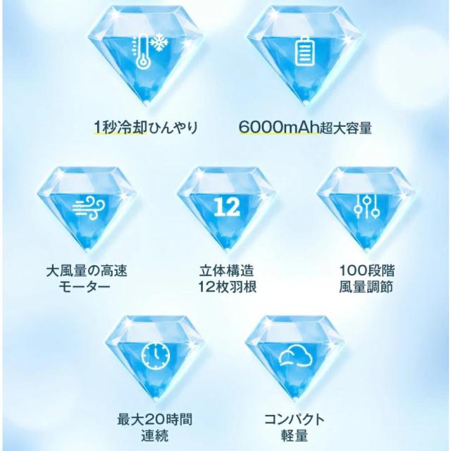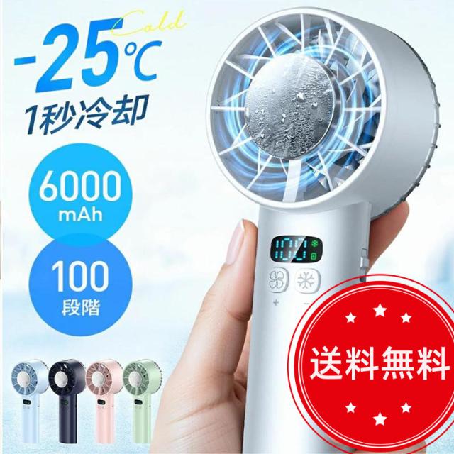 携帯扇風機 扇風機 小型 冷却プレート 手持ち -25℃瞬間冷却 6000mAh大容量 12枚羽根 100段階暴風 Max20時間連続