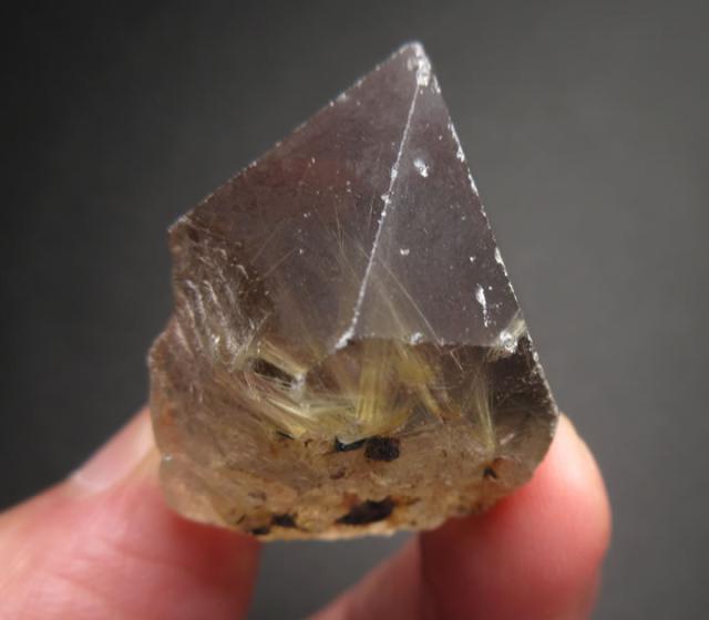 水晶の中に針状の鉱物(ルチル)が閉じ込められた神秘的な石です。