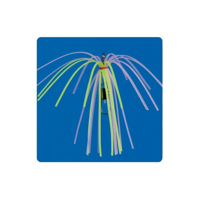 シリコンスカートが水中で花火のように舞い、視覚と波動でカワハギの心を捕えます。