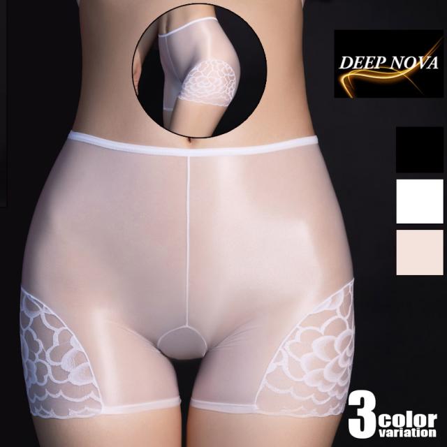 ユニセックスボクサー DEEP NOVA/ディープノバ 花柄レース ウロコ柄 透け 艶 サテン調光沢 立体縫製 ボクサー ボクサーパンツ 男性下着 ユニセックス