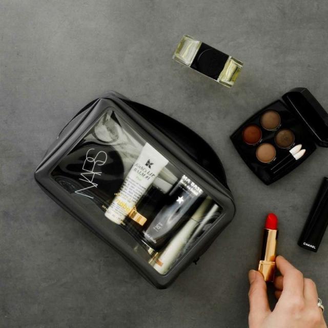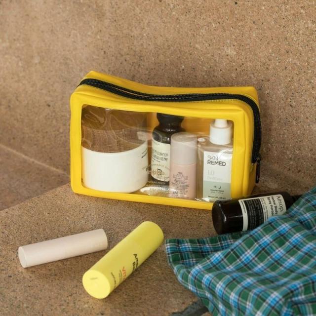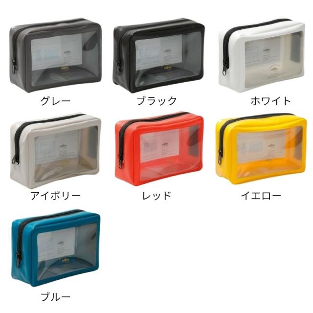 カラーバリエーションは7色、こちらのページのSS以外にSS/Lの3サイズ展開。日常的な小物入れとして使うのはもちろん、中身が見えるのを活かして、旅行のパッキングにもおすすめです。外側にもポケットが用意されているので、携帯やチケットなどすぐに使うものを入れても便利です。