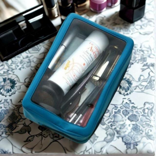 化粧ポーチ 持ち歩き コンパクト 旅行 コスメケース マスクや除菌シート 衛生品 トラベルポーチ 旅行ポーチ PVC素材で汚れにくく防滴仕様
