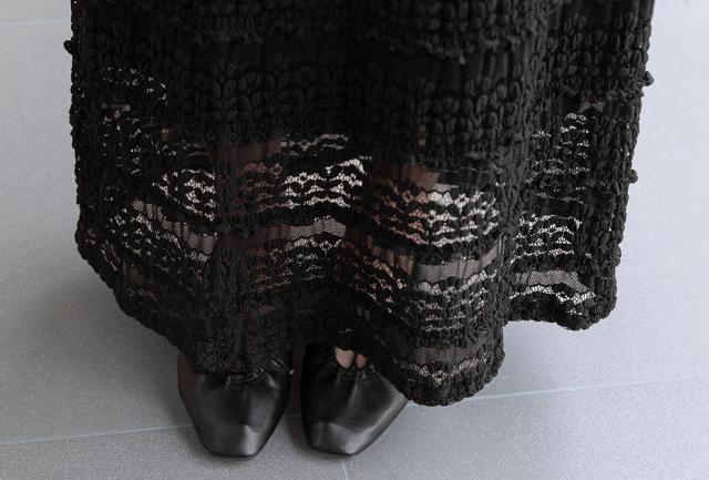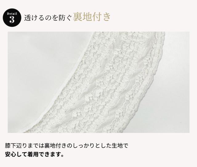 膝下辺りまでは裏地付きのしっかりとした生地で安心して着用できます。