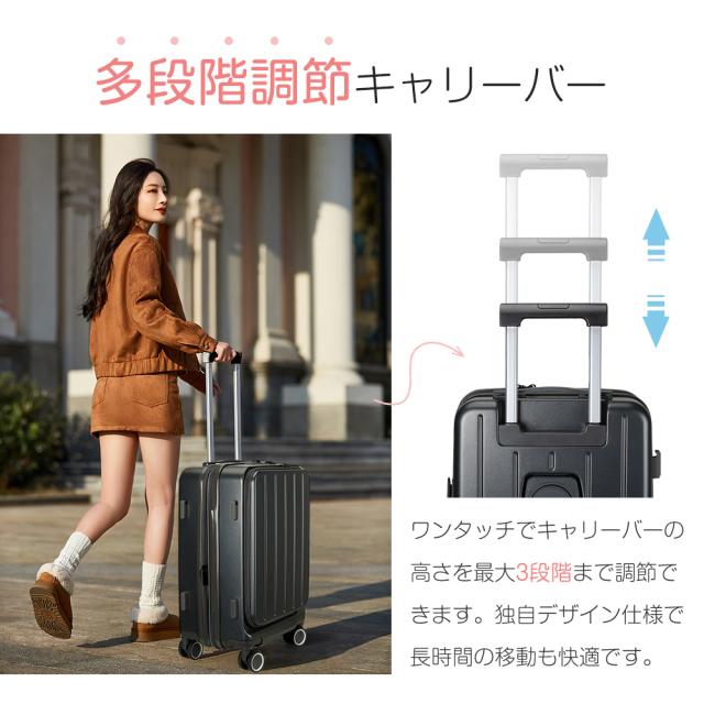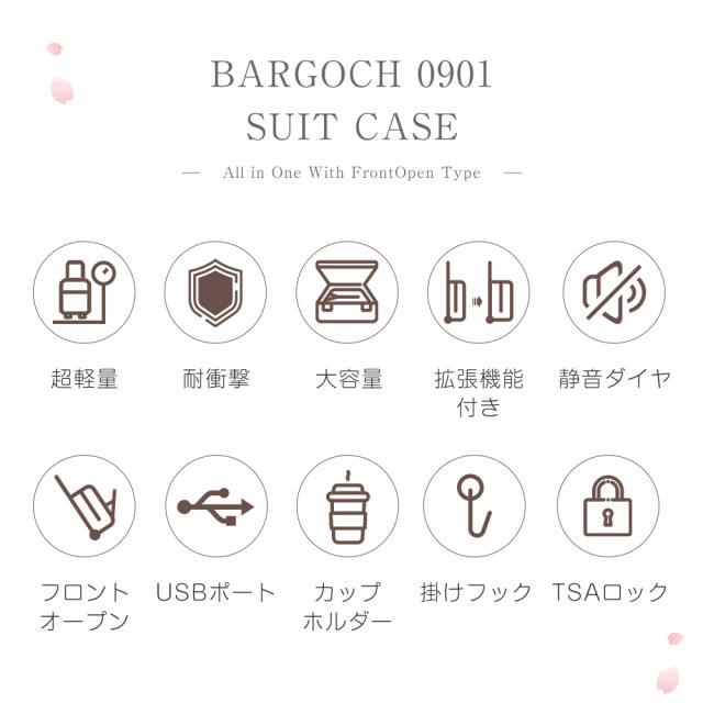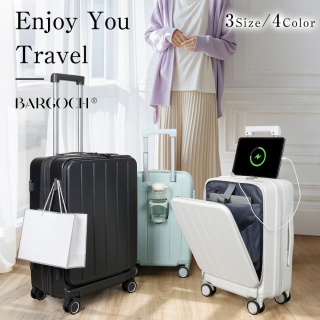 キャリーケース Lサイズ 拡張機能付き 修学旅行 フロントオープン キャリーケース S28インチ 多機能 USBポート カップホルダー BARGOCH 正規品 公式 静音 軽量 キャリーバッグ 大容量