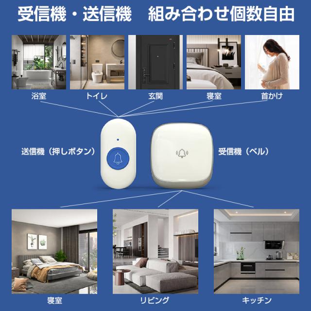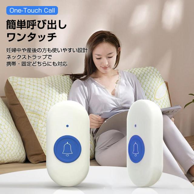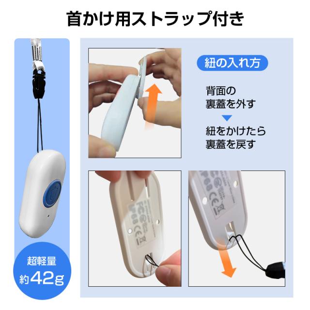ワイヤレスコール 首掛け 持ち歩き 携帯 高齢者 介護 見守り ナースコール 防水 工事不要 大音量 光 呼び出しベル 無線 チャイム SOS 音量調整 老人ホーム 妊婦
