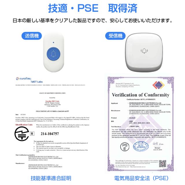 電源:受信機:コンセント式、送信機:ボタン電池,