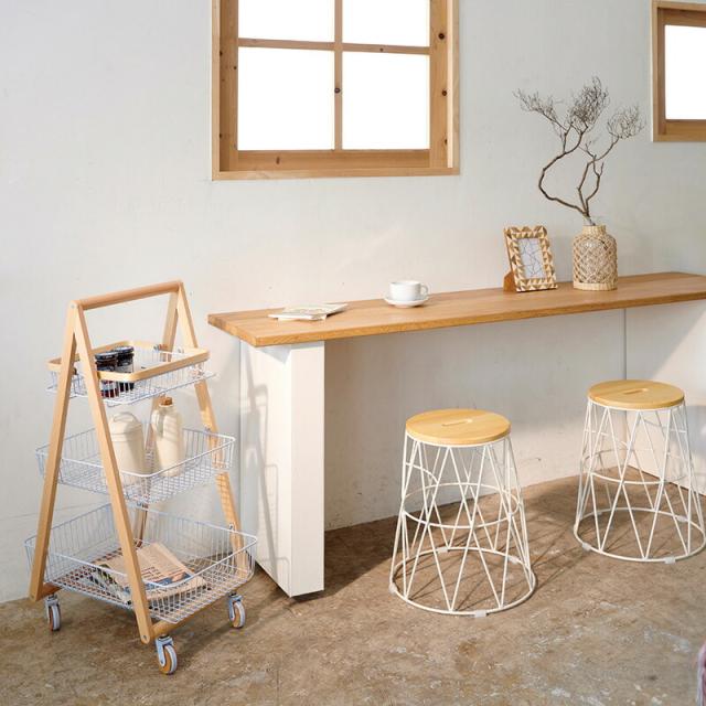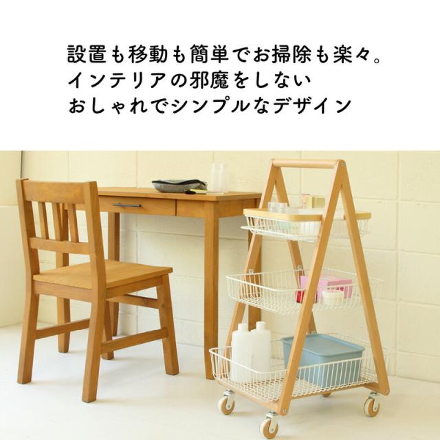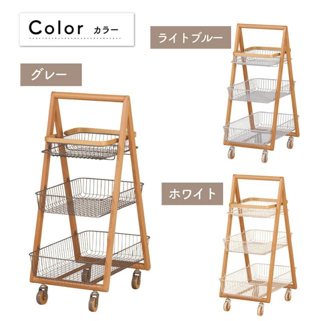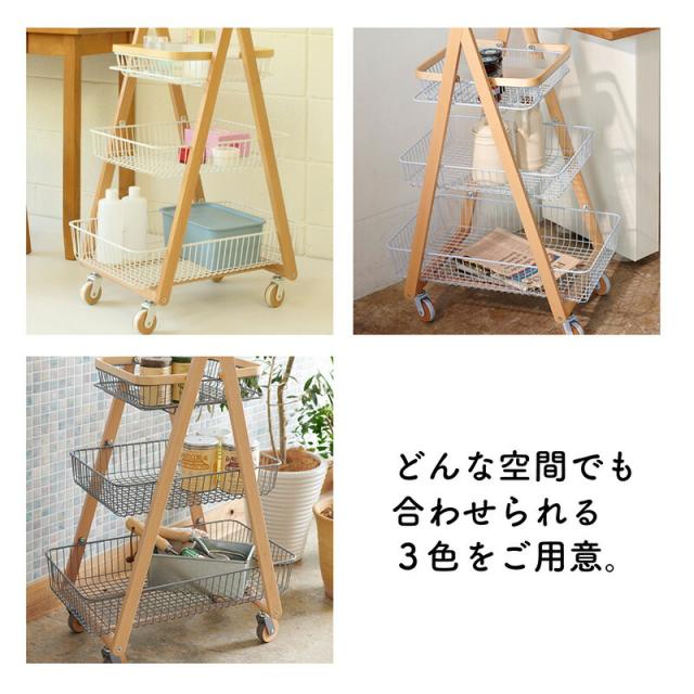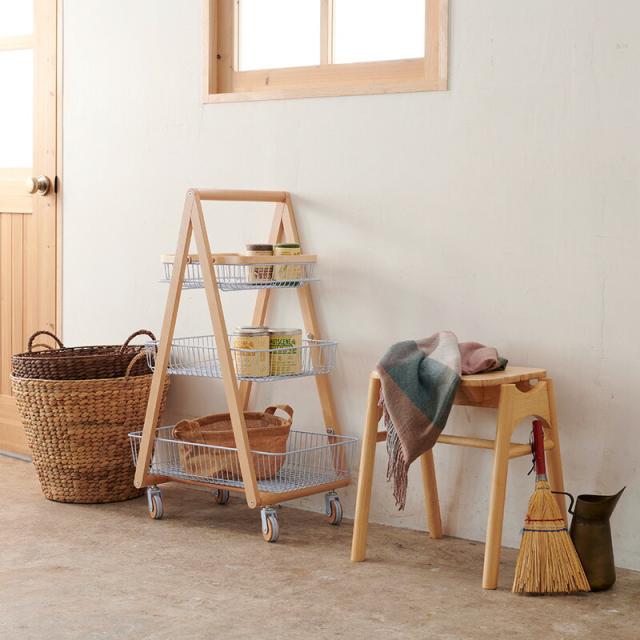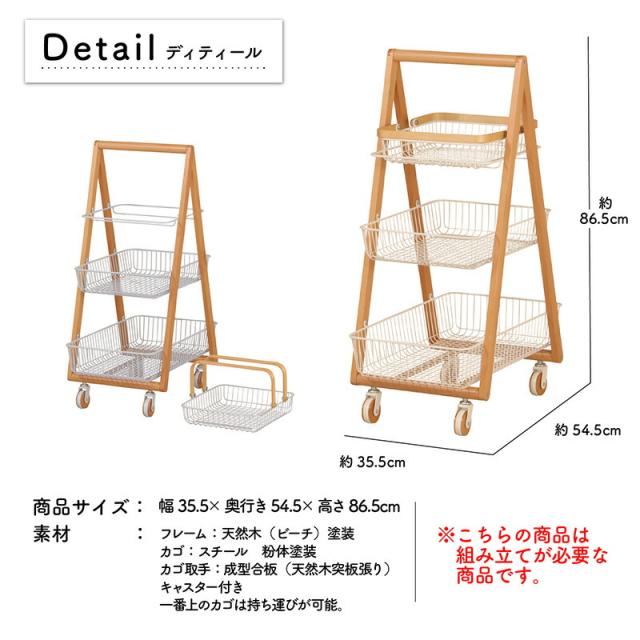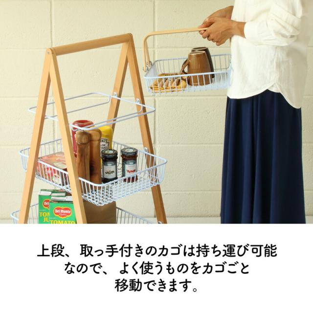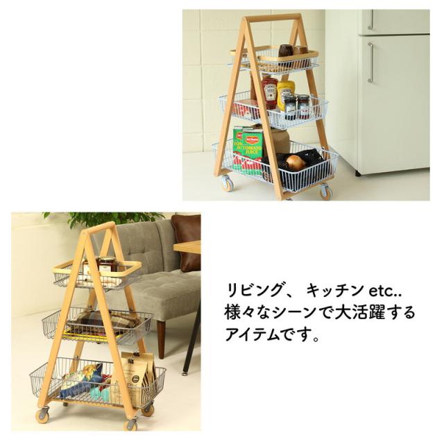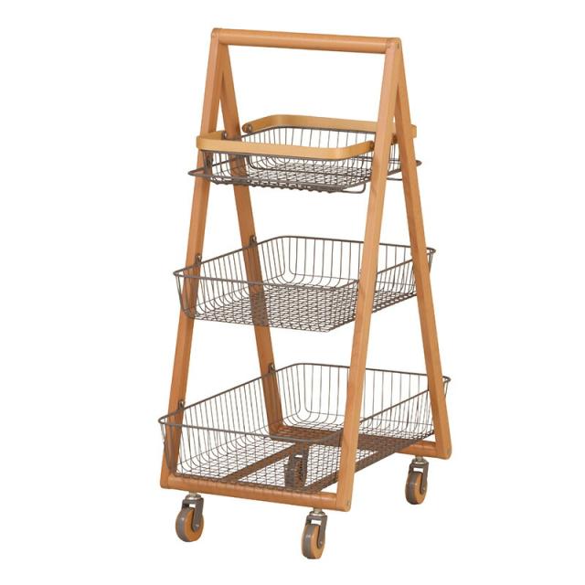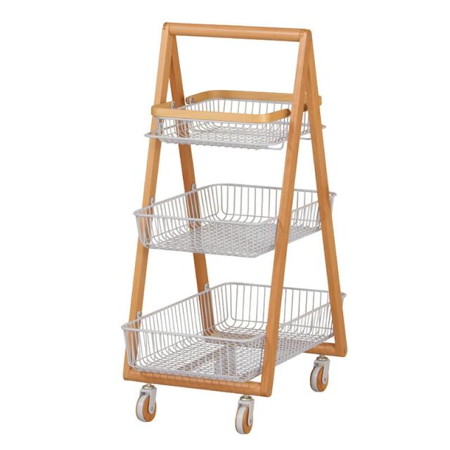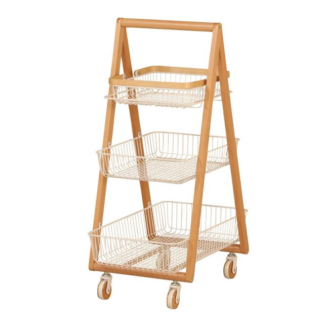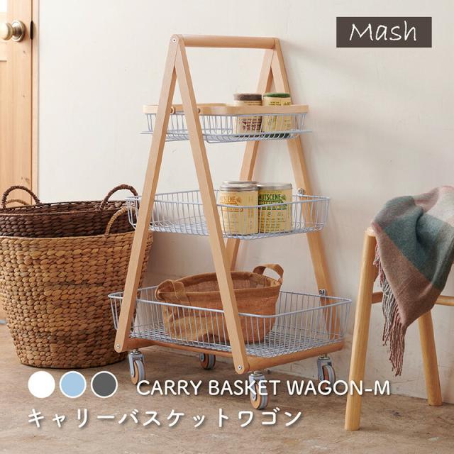 キャリー バスケット ワゴン 木製フレーム 3段ボックス キャスター付 持ち運び 取っ手 天然木 ナチュラルウッド シンプル おしゃれ 北欧 リビング キッチン 脱衣所 ランドリー Mash 新生活 引っ越し 北欧家具 マッシュ 弘益【LIV-CM3】 敬老の日