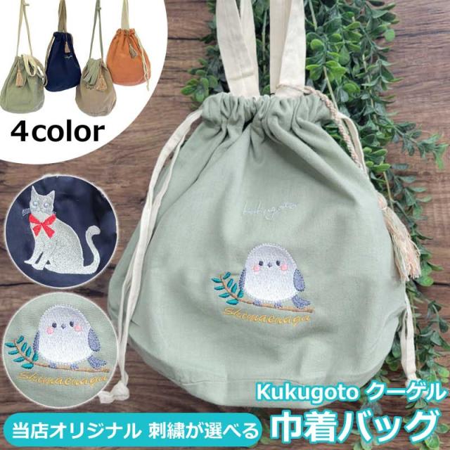 バッグ 刺繍 当店オリジナル シマエナガ ねこ 巾着バッグ kukugoto クーゲル バッグ タッセル シンプル 巾着 浴衣 小物入れ バッグインバッグ 軽量 おしゃれ かわいい ネコ リボン 猫 おすまし猫 デザイン イラスト コンパクト ポーチ 収納