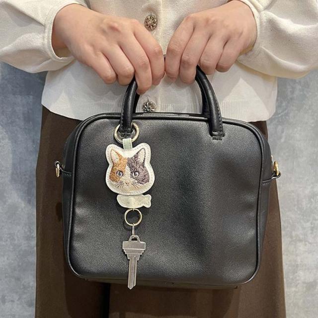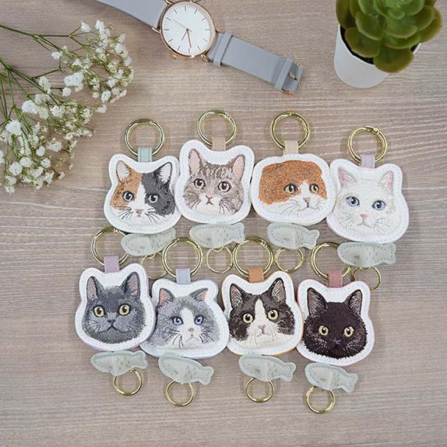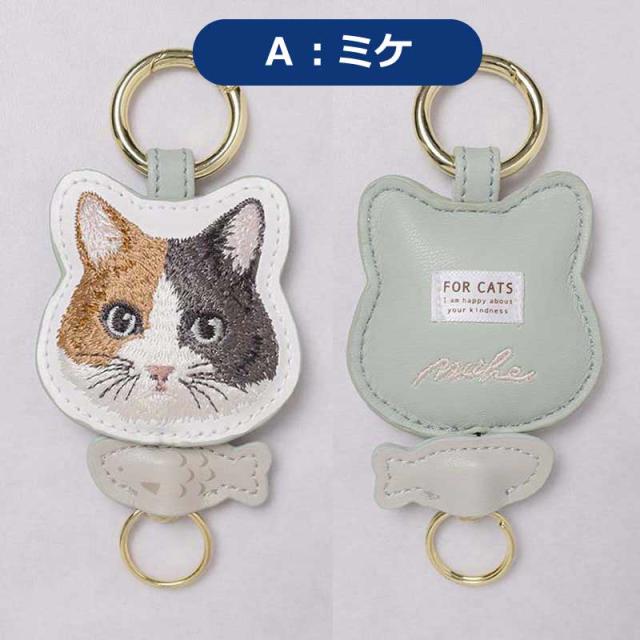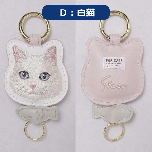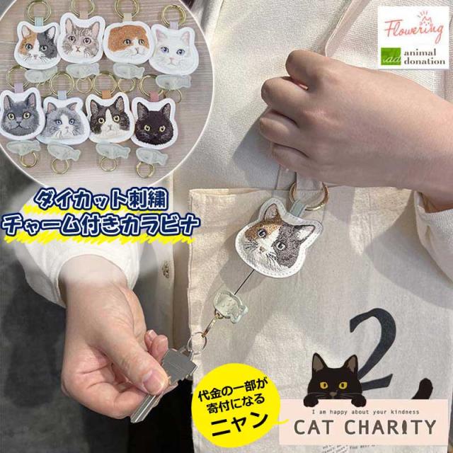 カラビナ リール付き 猫 キーホルダー かわいい キーチェーン おしゃれ チャリティ 刺繍 キャット ネコ ミニ 雑貨 キーケース アクセサリー 募金 盗難防止 紛失防止 バッグチャーム 着脱 バッグ リール 伸びる 鍵 キーリール 金具 プレゼント ギフト フラワーリング