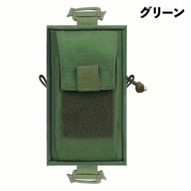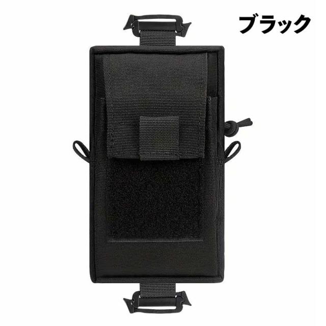 送料無料 リュックサックに付ける外付けポーチ サッと出せる スマホケース 小物入れ おしゃれ シンプル ブラック マジックテープ 装着 電車 男性 女性 簡単装着 大容量 ミリタリー