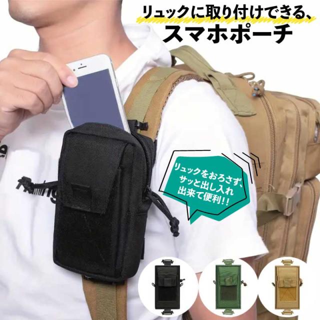 スマホポーチ リュック 取り付け 登山 アウトドア バックパック メンズ レディース 撥水 ポケット付き 大容量 ベルト通し バッグ ショルダー ベルト ナイロン おしゃれ 財布 軽量 スポーツ 仕事用 サバゲー 通勤 通学 ガジェットポーチ