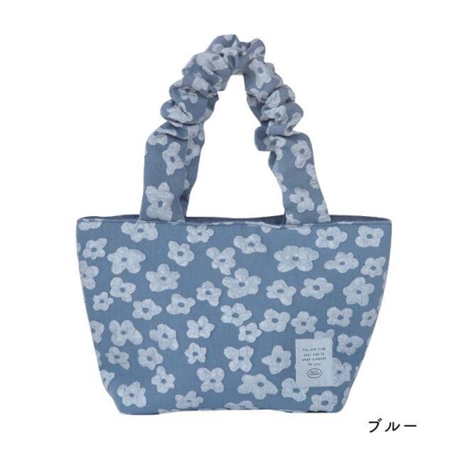 送料無料 くしゅくしゅ ランチトート 軽量 お散歩 サブバッグ くすみカラー ベージュ ブルー ブラック プレゼント コンパクト かわいい ビスク お散歩バッグ 母の日ギフト Puffy Flower