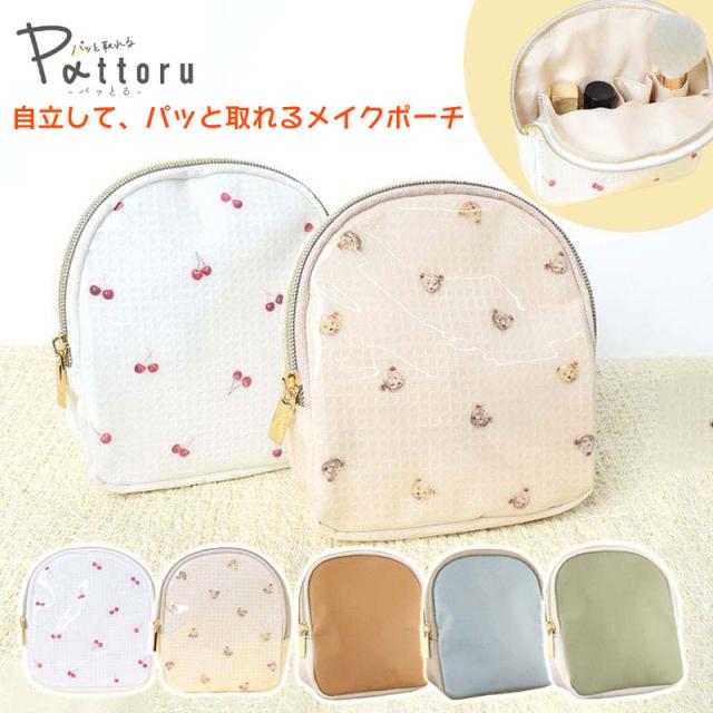 ポーチ フラワーリング パッとる 立つメイクポーチ マチ付きポーチ ベア チェリー おしゃれ かわいい ブラウン グリーン ホワイト 大人女子 人気 大人 レディース ブランド 小物入れ プチギフト プレゼント Flowering