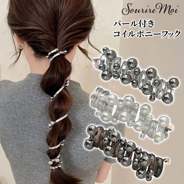 コイルポニー ポニーフック 巻く コイル アップ ポニーフック ヘアアクセサリー ヘアアクセ まとめ髪 リボン スパイラルヘア 玉ねぎヘア サテンリボン トレンドヘア エレガント おしゃれ ヘアアクセ ヘアフック 大人っぽい プレゼント アクセント お出かけ
