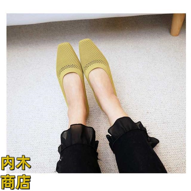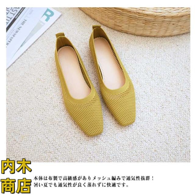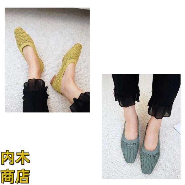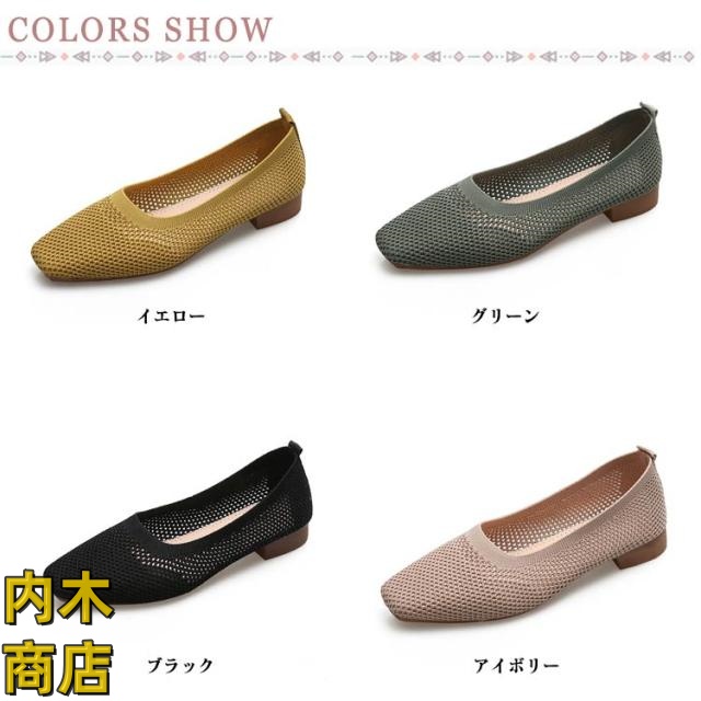 レビュー高評価 シンプル フラットシューズ シューズ サマーシューズ レディース オフィス 通気性 収納便利 ぺたんこ 美脚 ローヒール フラットパンプス 快適 メッシュ 夏 浅口 蒸れない パンプス ニット メッシュパンプス 無地 スクエアトゥ 冬物