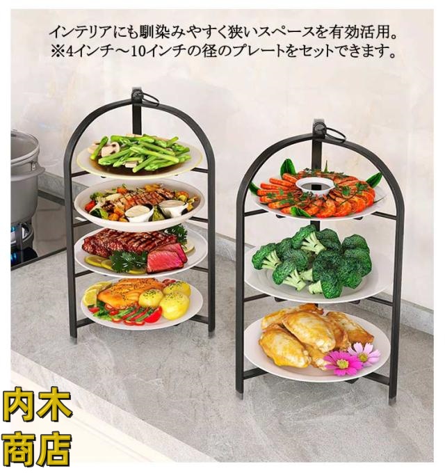 | 3段 4段 折りたたみ式プレートスタンド ワンランク上のティータイムを。 テーブル空間を立体的に演出することができます。 乗せるお皿によって和洋問わずにお使いいただけます。 折りたたんでコンパクトになるので収納も省スペースで嬉しい! インテリアにも馴染みやすく狭いスペースを有効活用。 ※4インチ?10インチの径のプレートをセットできます。 | |