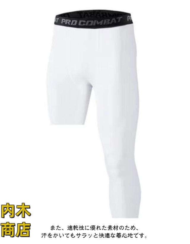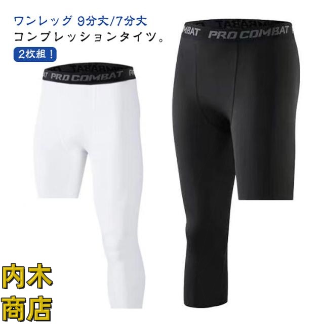 ホワイト トレーニング 九分丈 スポーツタイツ ワンレッグ 2枚組 七分丈 スポーツ スパッツ スポーツレギンス 着圧タイツ レギンス スポーツタイツ 男性用 ランニング 練習用 速乾 アンダーウェア ストレッチ 黒 アウトドア 白 ワンレッグ スポーツ