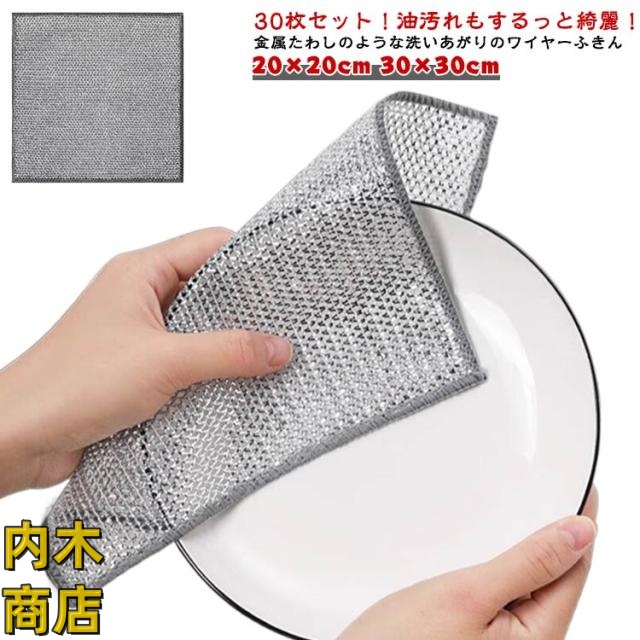 30×30 油汚れクロス ふきん ワイヤーふきん ワイヤー食器用雑巾 キッチンタオル キッチンクロス キッチン レンジ 20×20 ふきん ふきん 30枚セット 掃除 食器洗い 汚れ掃除 台拭き たわし 拭き掃除 油汚れ対策 コンロ