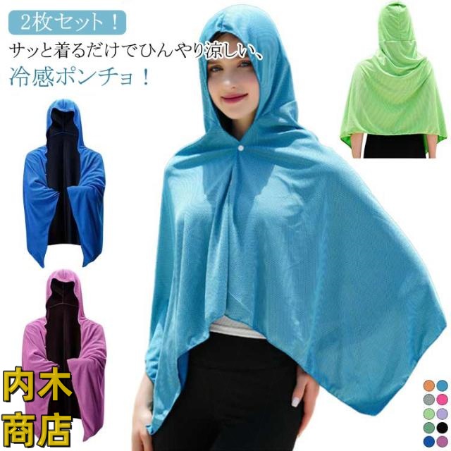 クールパーカー 2枚 熱中症対策 大人 ギフト 冷感アイテム フード 赤ちゃん 猛暑 日焼け対策 夏 プレゼント 子供 冷感ポンチョ ケープ キャンプ カット 涼しい ひんやり 海水浴 冷感ジャンボポンチョ 冷感ポンチョ セット ポンチョ 熱中症対策 大判