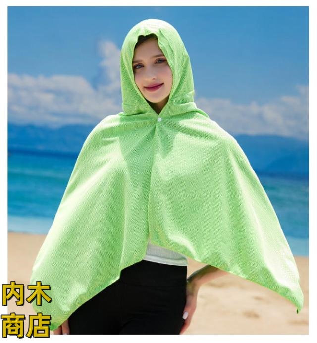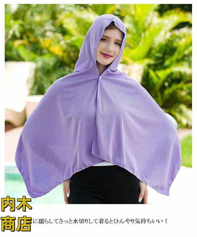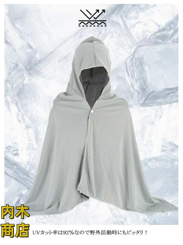 | サイズについての説明 | 90(フード含め)*145cm ※サイズ表の実寸法は商品によって1-3cm程度の誤差がある場合がございます。 効果的な使い方 STEP1:ぬらす 本体にしっかり吸水させてください。 STEP2:しぼる 水が滴らない程度に軽くしぼってください。 STEP3:ふる 数回強く振ってください。生地温度が低下し、冷たくなります。冷たくなくなったら、STEP1?3を繰り返してください。 |
