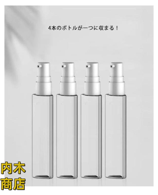 | 4in1 マルチトラベルボトル 4本のボトルが一つに収まる! シャンプー、リンス、ボディソープ、日焼け止めなどトロトロした液体に使えます! コンパクトで持ち運びに便利。 窓付きで残量もわかりやすい。 収納したままキャップを回すだけで使用ができる。 | |