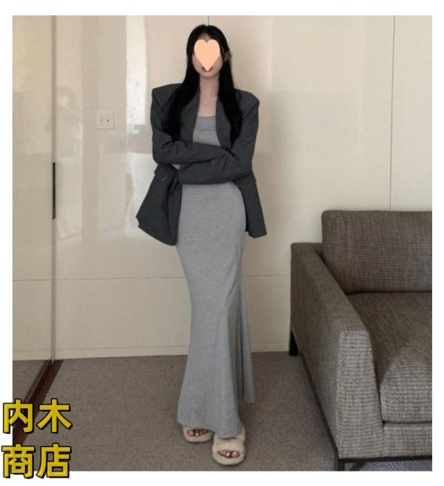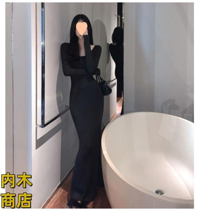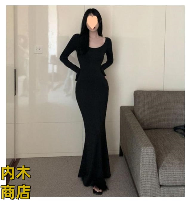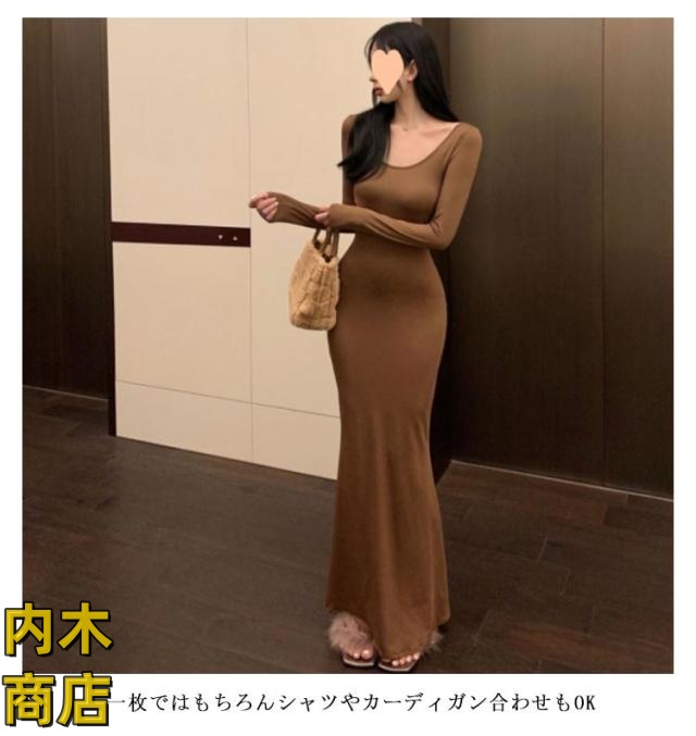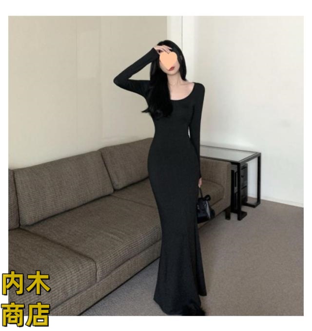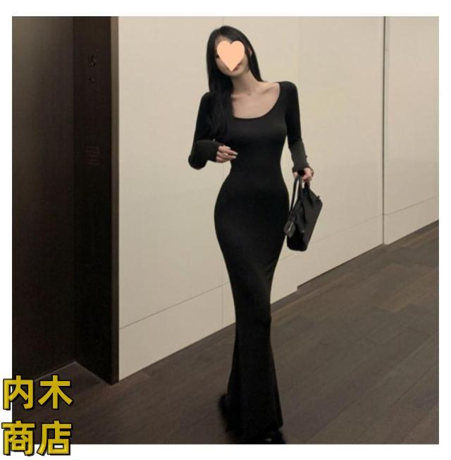 ランキング常連 シンプル ブラック レディース 収納便利 コーヒー タイト グレー 無地 黒 ワンピース ロング丈 スリムフィット カジュアル 韓国ファッション 夏 マーメイドワンピース 春秋 長袖 フレアヘム マーメイド 春 在庫わずか 送料無料