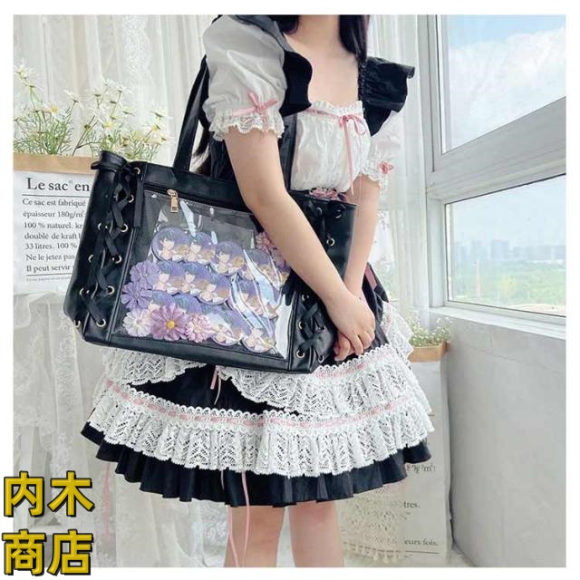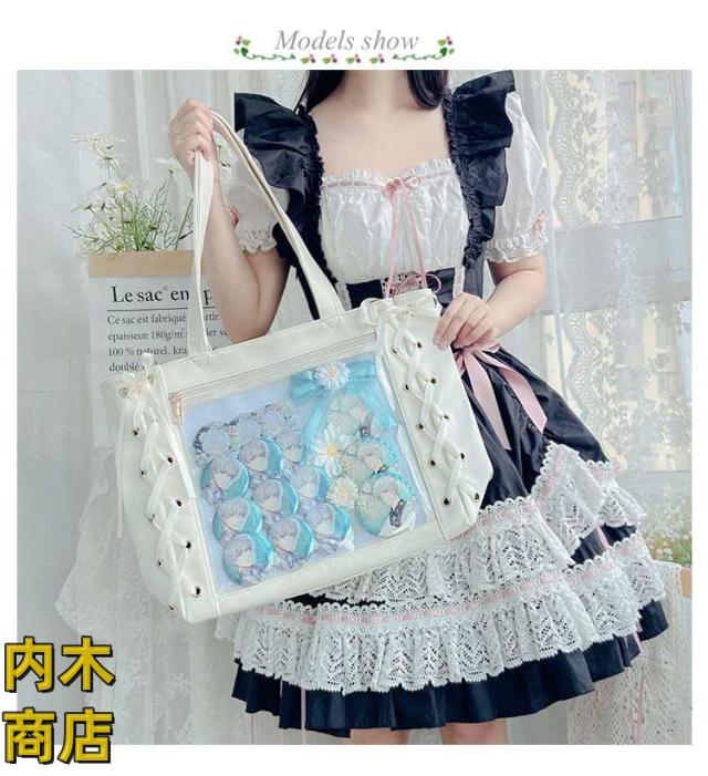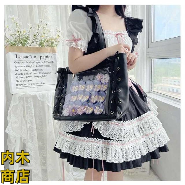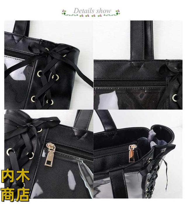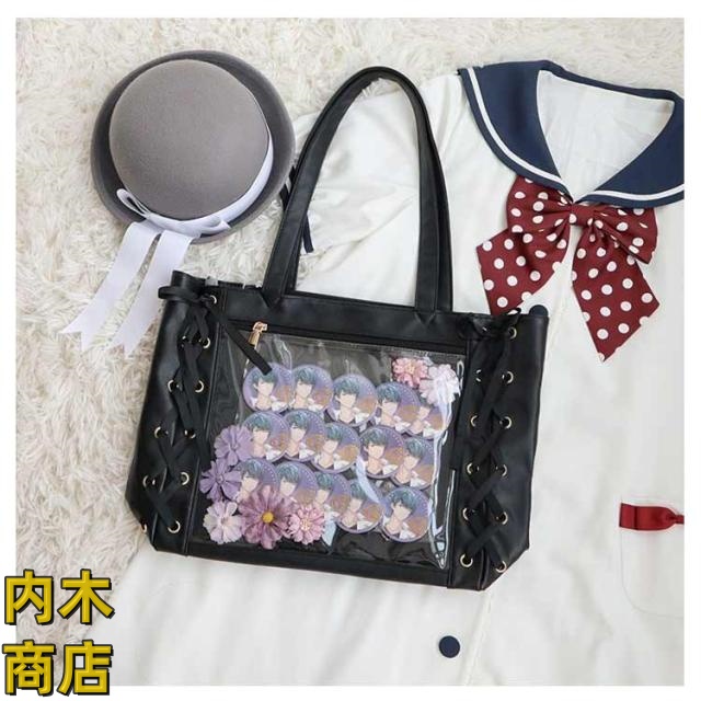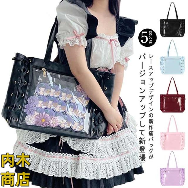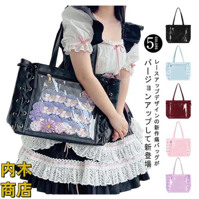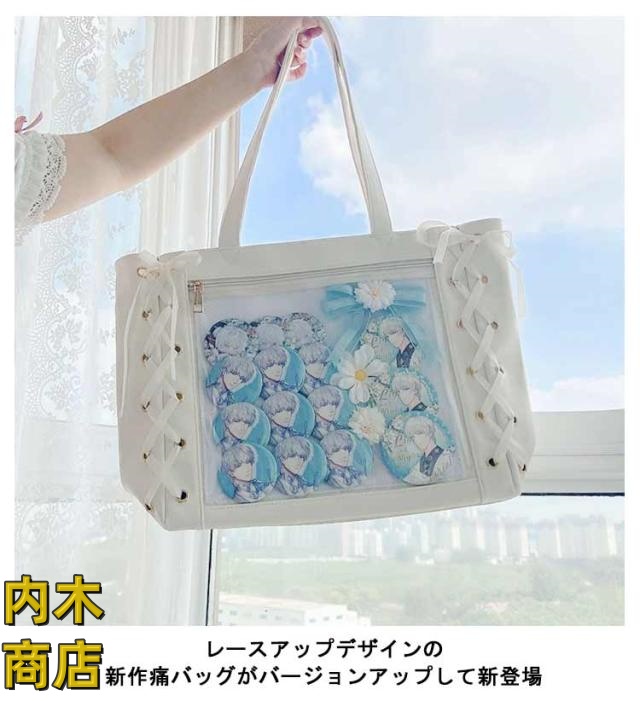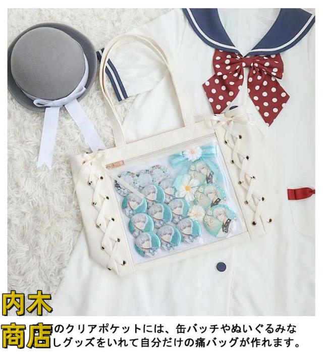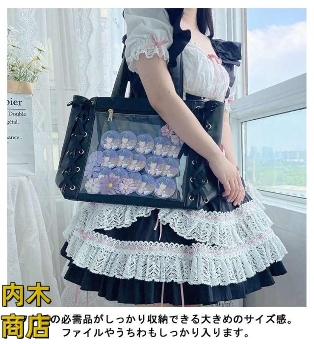 即納OK 売上急増中 クリアバッグ 見せバッグ 痛バッグ 学生 レディース 大容量 痛バ りぼん付き 缶バッジ イベント レースアップ トート 大人 イベント用 ギフト 2点セット かわいい プレゼント ライブ用 用 ぬいぐるみ 無地 推し活 可愛い
