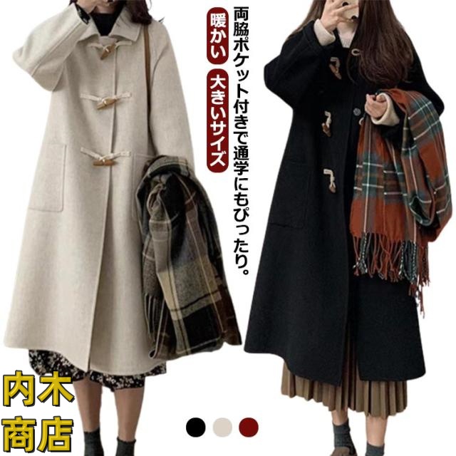 軽い ロングコート アウター 無地 防寒 コート 暖かい 前開き 学生 大きいサイズ ロング 長袖 ダッフルコート 通勤 秋冬 女子 暖かい 通学 ポケット 軽量 ロング