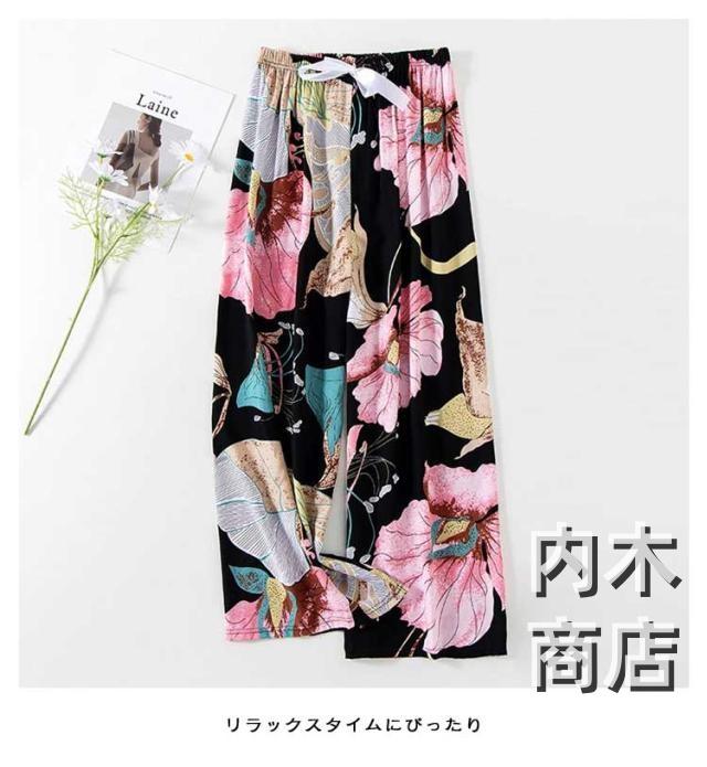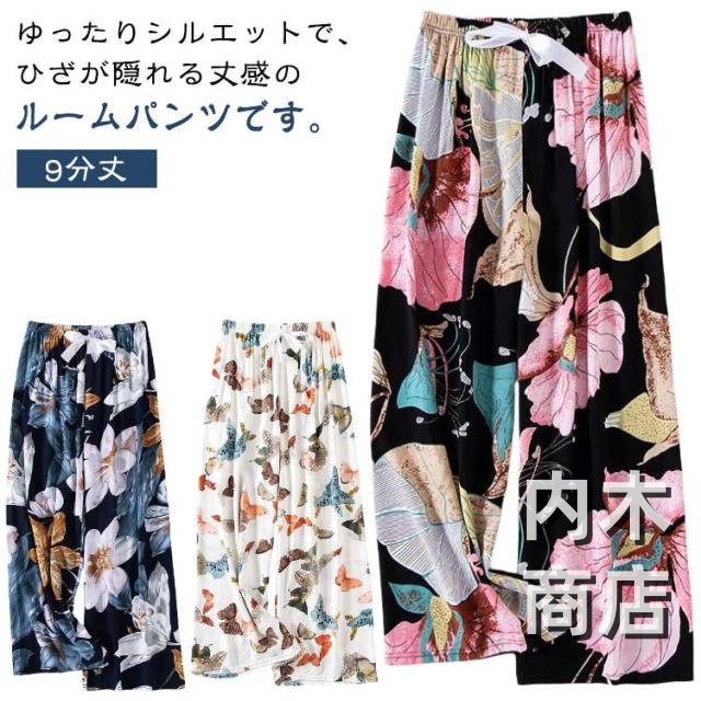 即納OK レビュー高評価 おしゃれ リラックスパンツ レディース かわいい 婦人 ルームウェア 春 夏 総柄 薄手 ルームパンツ サラテロパンツ とろみ パジャマ 秋 9分丈 花柄 九分丈 ゆったり 夏パンツ ロングパンツ ワイドパンツ 涼しい ステテコ