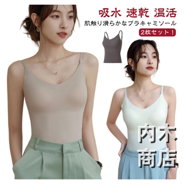 | 2枚セット!肌触り滑らかなブラキャミソール ひんやり冷たい接触冷感素材で、お肌のベタつきを解消してくれます 重ね着しても静電気が起きにくく通気性抜群でどんな季節も快適に過ごせる♪ 汗をかいても乾きやすい♪ ストレッチ素材が体にほどよくフィットして、ブラジャーの締めつけが苦手な方にもおすすめです | |