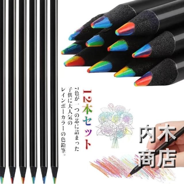レインボーえんぴつ 虹色 多色えんぴつ 塗り絵 虹色鉛筆 7色芯 誕生日 着色用 可愛い 入学準備 レインボー 文房具 キッズ 多色鉛筆 入学祝い 子ども 色鉛筆 色鉛筆 カラフル色鉛筆 12本セット 色えんぴつ お絵かき