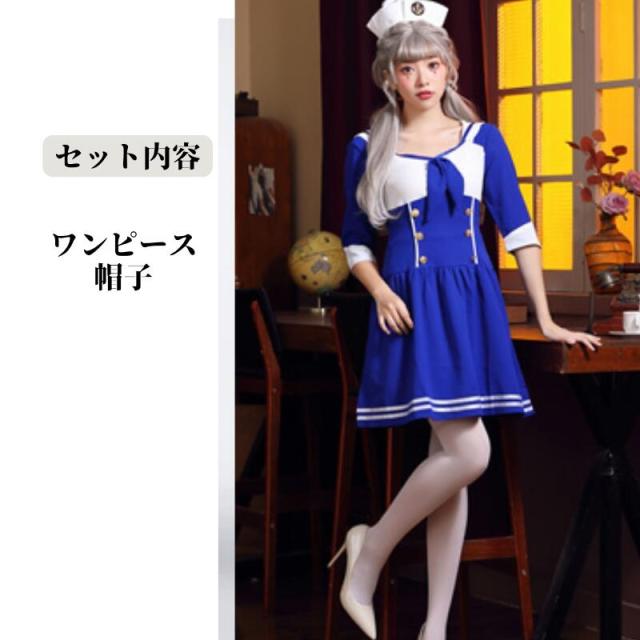 ハロウィン セーラー服風 水兵 海兵 ミニスカート 制服 女子高生 ブレザー ハロウィン ネクタイ付き コスチューム 衣装 仮装 セーラー服 セーラー 制服 長袖 スカーフ 紺 ボーダー 制服 アイドル 大人 女性 大人用 ステージ ハロウィン衣装