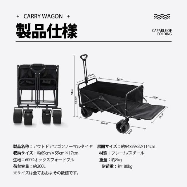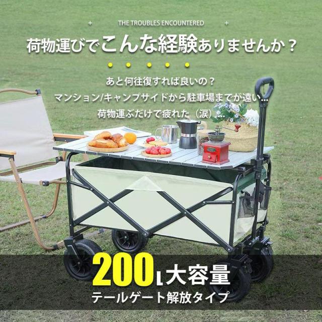 キャリーワゴン キャリーカート アウトドアワゴン 後ろ開け 折りたたみ 4輪 頑丈 耐荷重180kg 200L 大容量 コンパクト アウトドアキャリー
