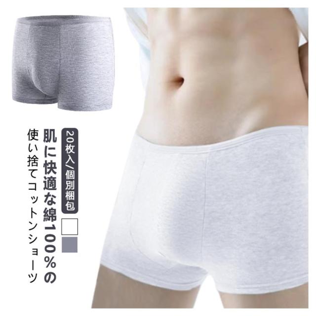 使い捨て 男性用 綿100% 20枚入 コットン ショーツ パンツ メンズ ボクサーパンツ 避難 100 20枚入 下着 セット 綿 旅行 業務 個別包装 携帯用 入院 介護 消耗品 抗菌 衛生的 安全 安心 修学旅行 便利 グッズ インナー