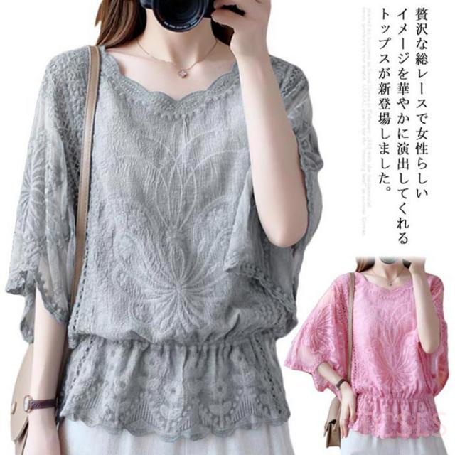 送料無料 ブラウス 総レース ドルマンスリーブ レディース チュール トップス おしゃれ お洒落 大人 可愛い 着痩せ 長袖 フォーマル オフィス 通勤 OL 通学 きれいめ カジュアル 通気 春夏秋 かわいい 新作