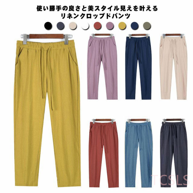 送料無料 パンツ 麻 リネン レディース 夏 涼しい リネンパンツ 棉麻パンツ ロングパンツ テーパードパンツ クロップドパンツ 9分丈 ウエストゴム 薄手 シンプル 無地 楽ちん きれいめ 春 高校生 大学生 リラックス ナチュラル 軽い 上品