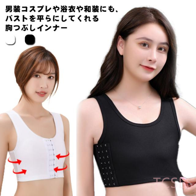 | 男装コスプレや浴衣や和装にも、バストを平らにしてくれる胸つぶしインナー。 長時間着用でも苦しくない! ホックで強弱の調節が可能。その日の気分や体調、用途によって緩めやきつめと調節ができます。 肩が広めのタンクトップタイプだから、長時間の着用も痛くなりにくい。 | |