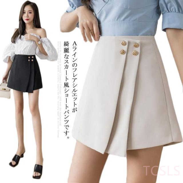 送料無料 ショートパンツ レディース キュロット ミニスカート Aライン 短パン ハイウェスト 無地 可愛い カジュアル ショーパン 夏 シンプル 通勤 OL
