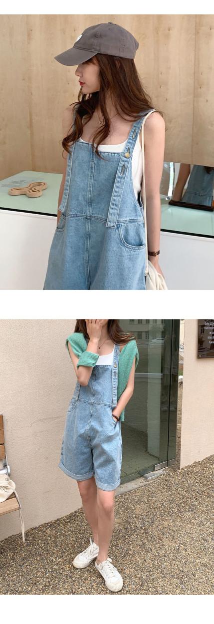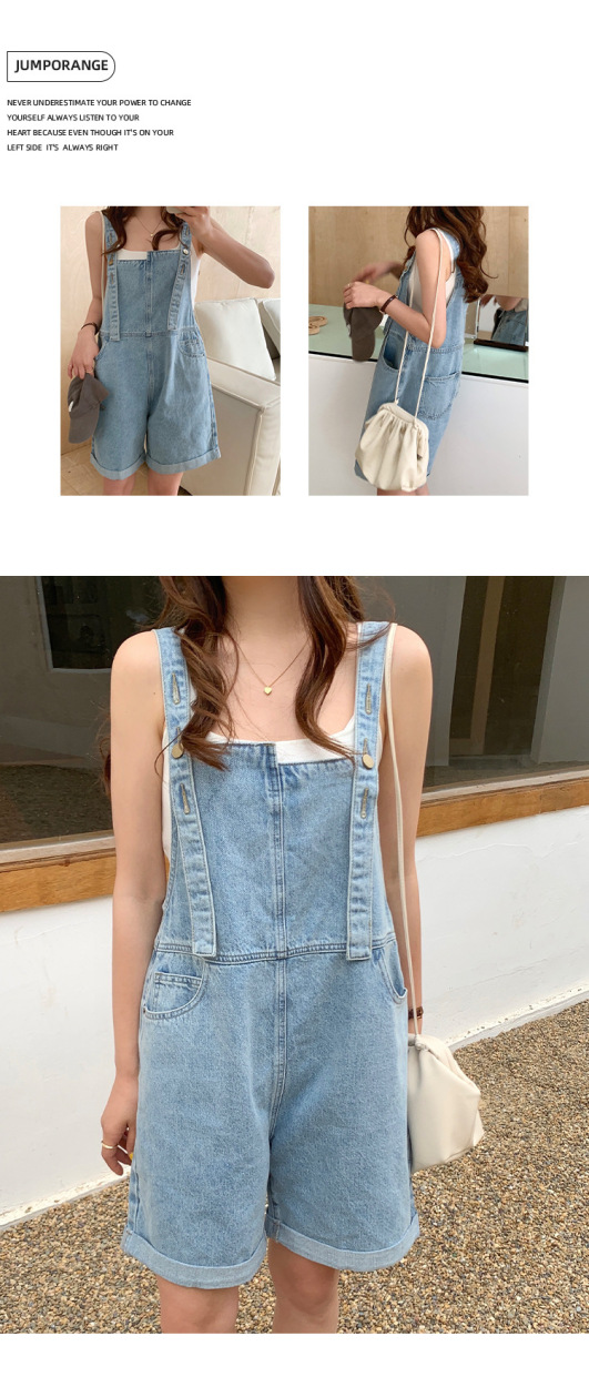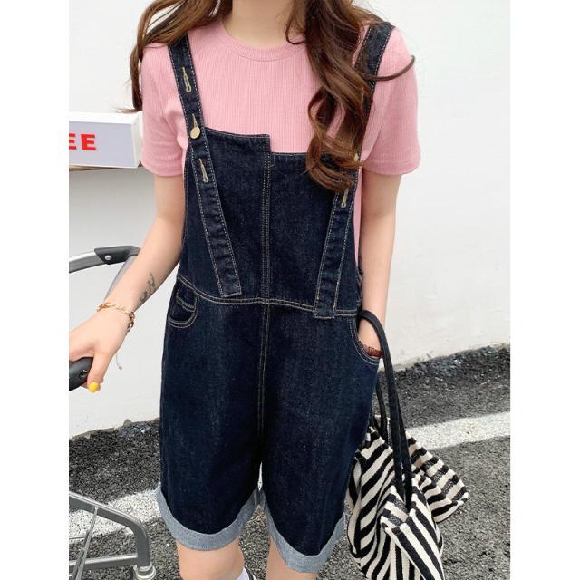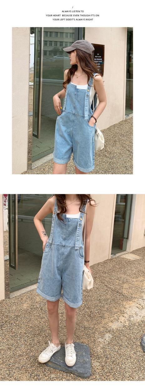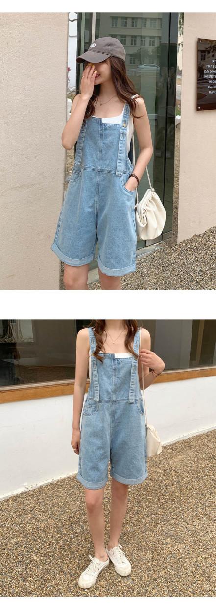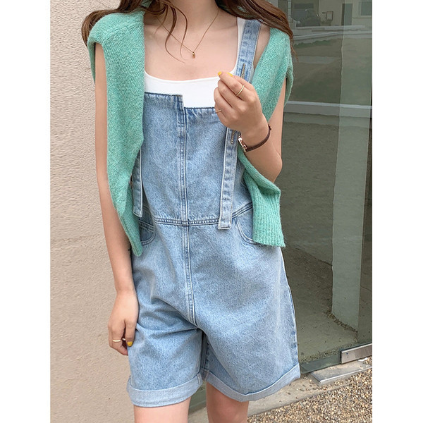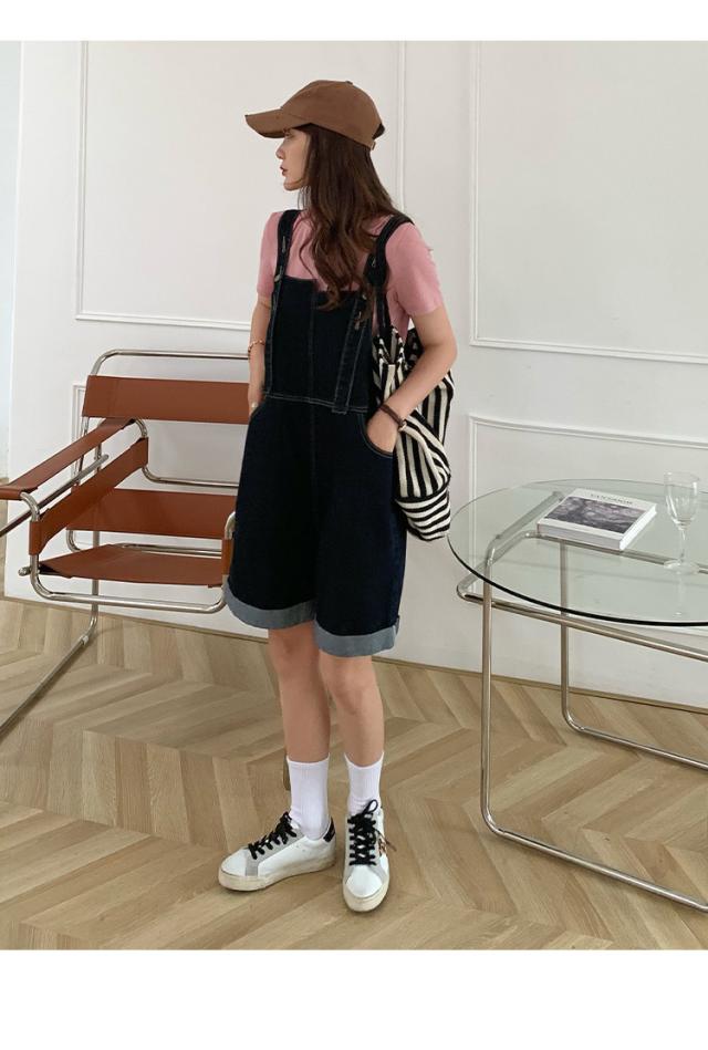 サロペット オーバーオール レディース デニム ロールアップショート ショートスパンツ ポケット付き 着痩せ かわいい カジュアル おしゃれ 20代 30代 40代