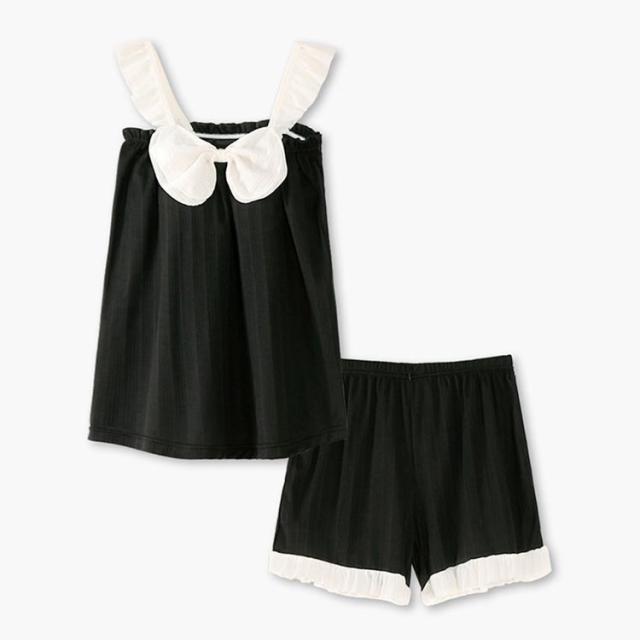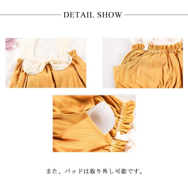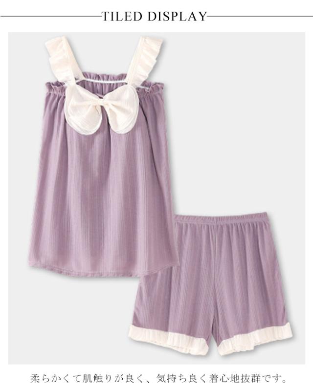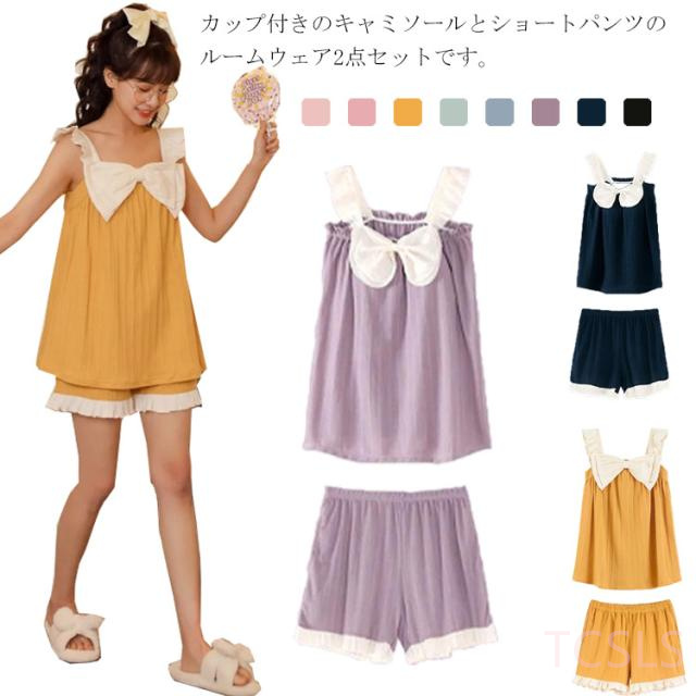 カップ付き ルームウェア 上下セット レディース パッド付き キャミソール ショートパンツ 綿 夏 パジャマ セットアップ 部屋着 かわいい リボン付き フリル タンクトップ おしゃれ ナイトウェア シンプル ポケット付き